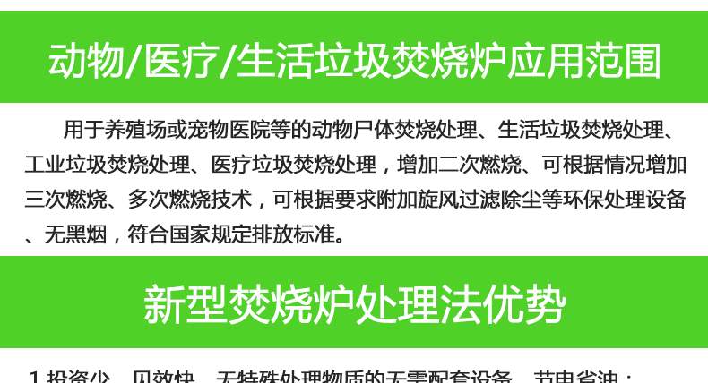 1、氣化焚燒技術,適用于焚燒注射器、點滴容器等醫療器材以及各類紙質廢材、繃帶、脫脂棉、各種醫療污物與醫院、醫療機構排出的各種廢棄物。