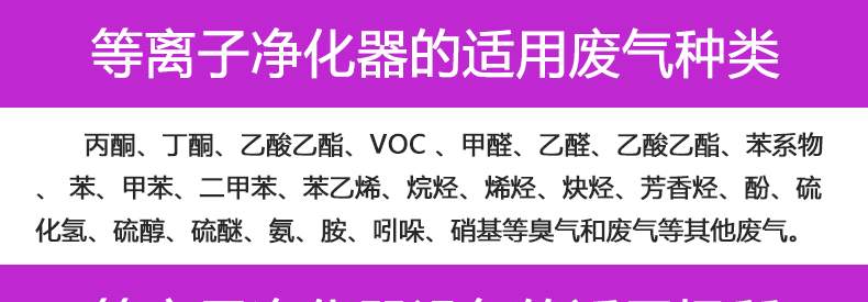 等離子技術產生的高能電子能量高,自由基密度大,因此絕大部分有毒有害物質均能被分解,且處理對象廣泛,對各種工業有機廢氣及國家《惡臭污染排放標準》中規定的八大惡臭物質均能有效去除。相比其它廢氣處理方法,等離子體技術具備能耗低、使用便利、無二次污染等特點,是目前廢氣污染治理中最富有前景、最行之有效的技術方法。